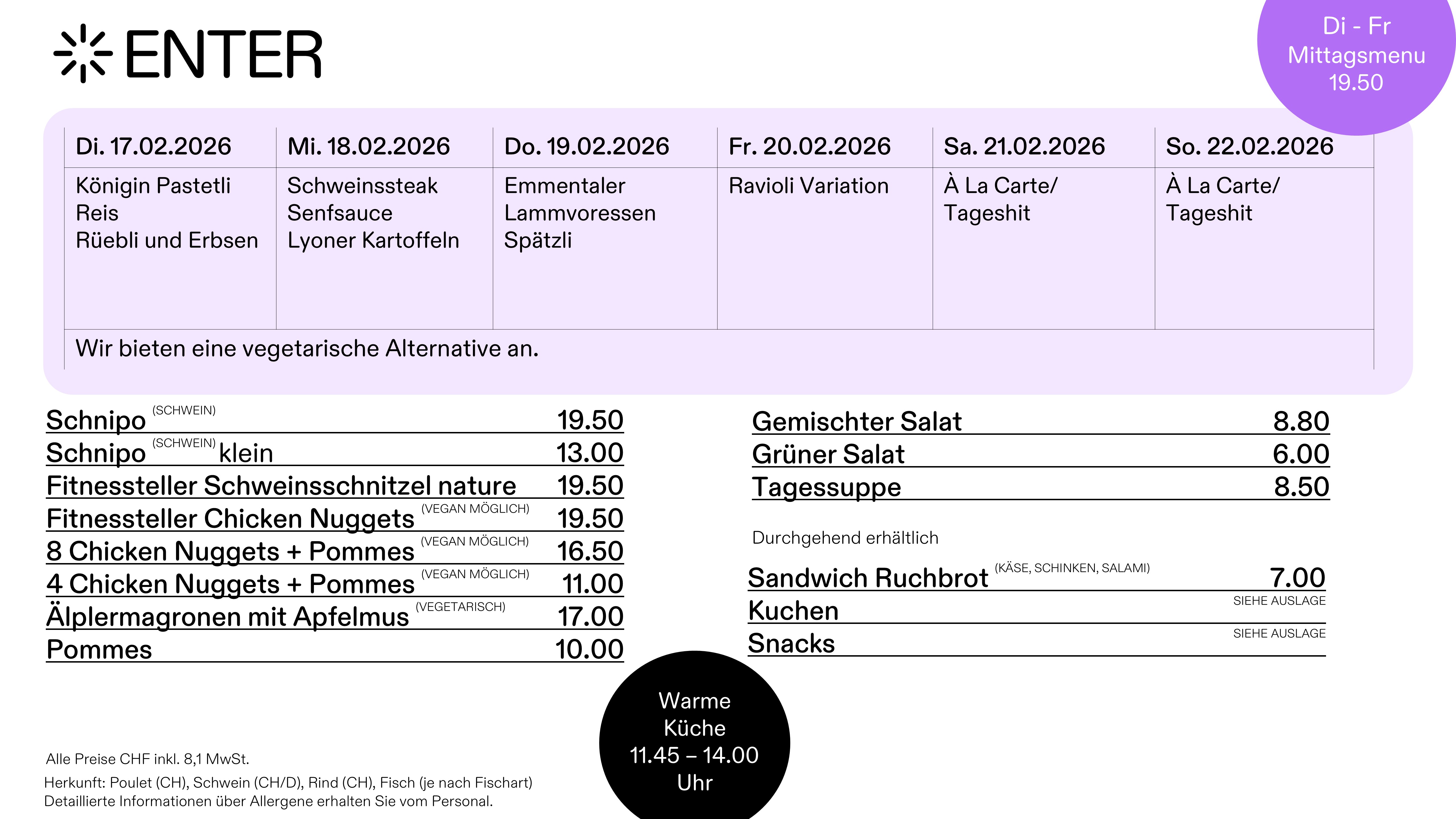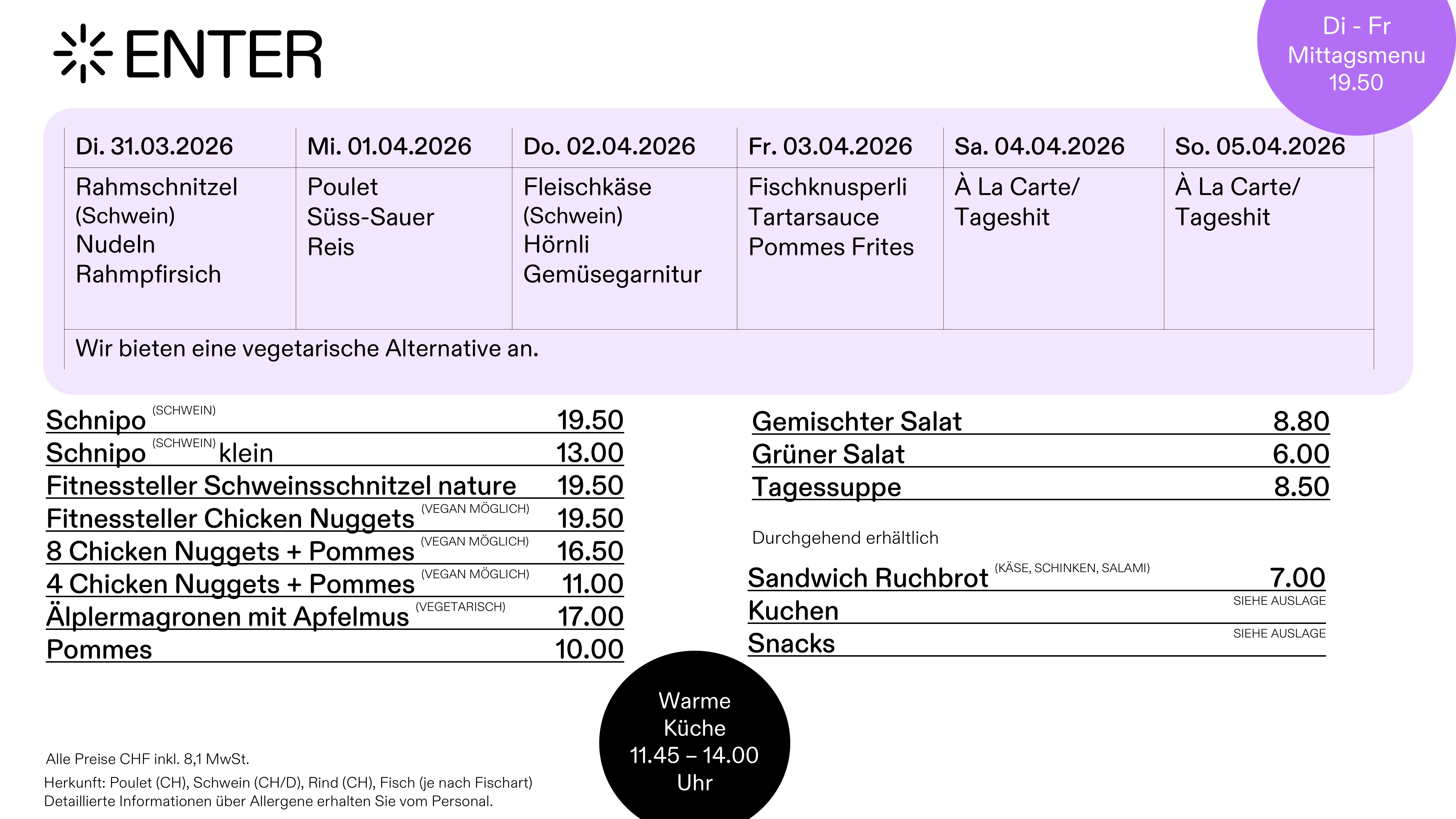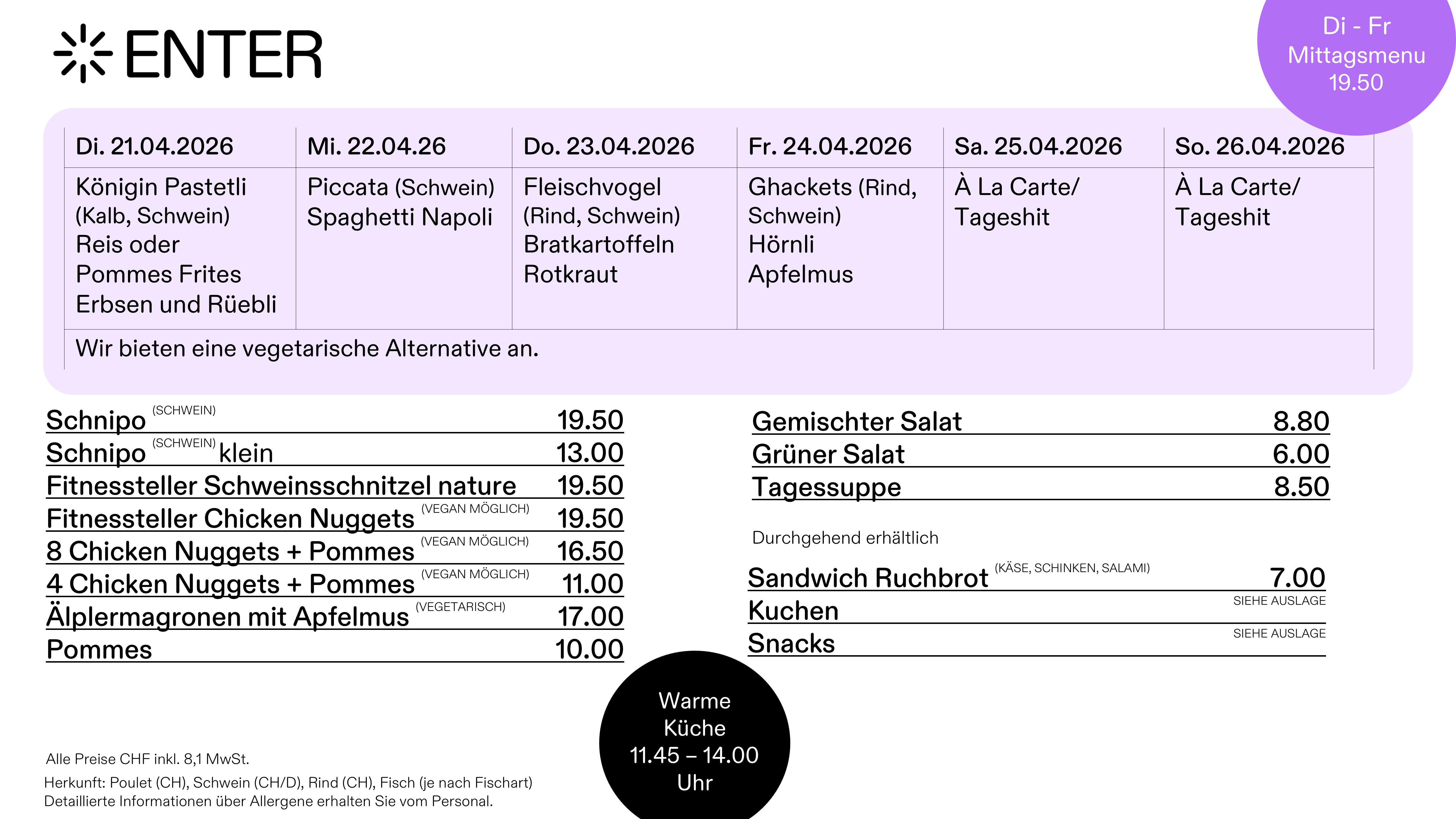 Warme Küche von 11.45 - 14.00