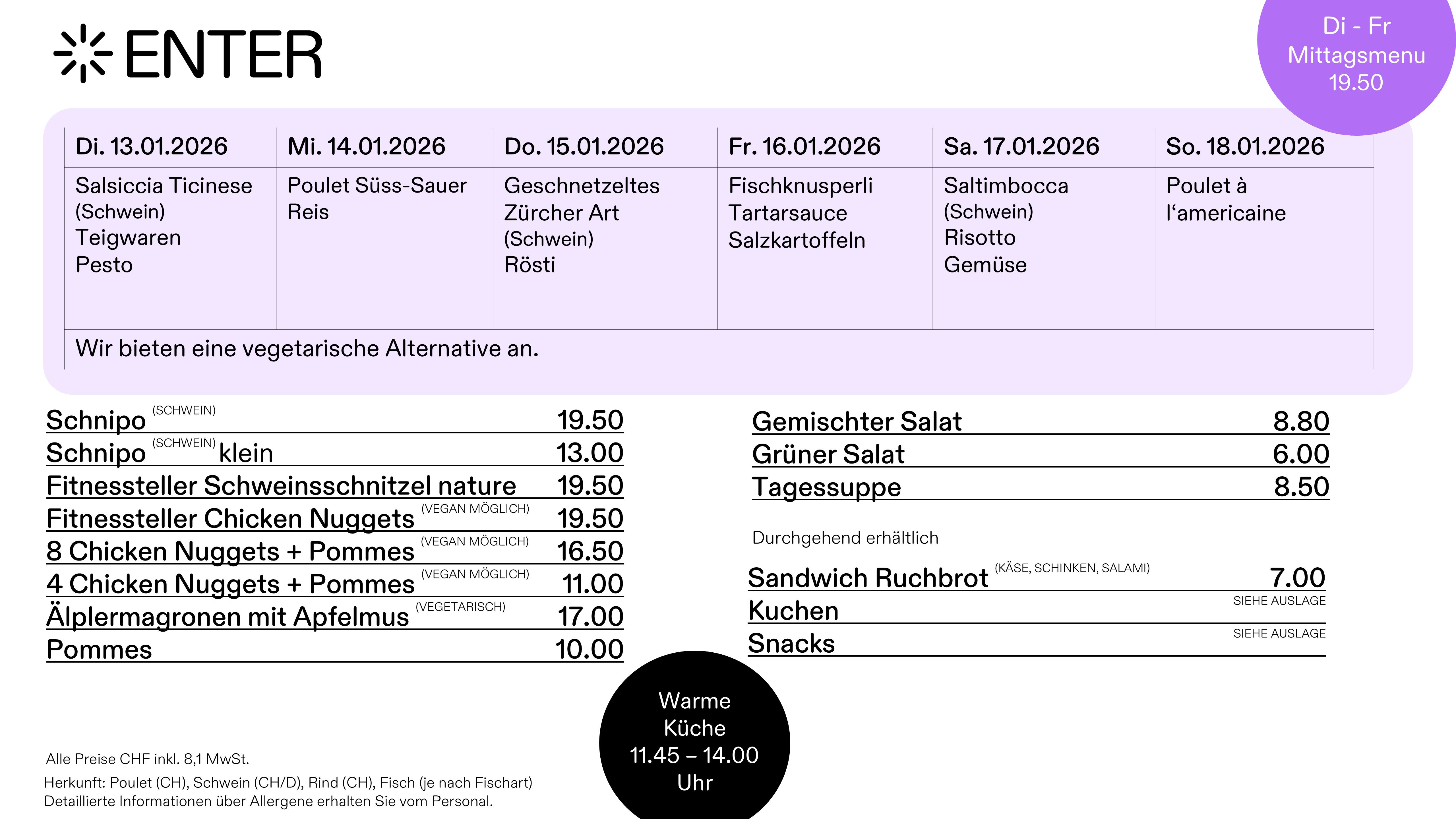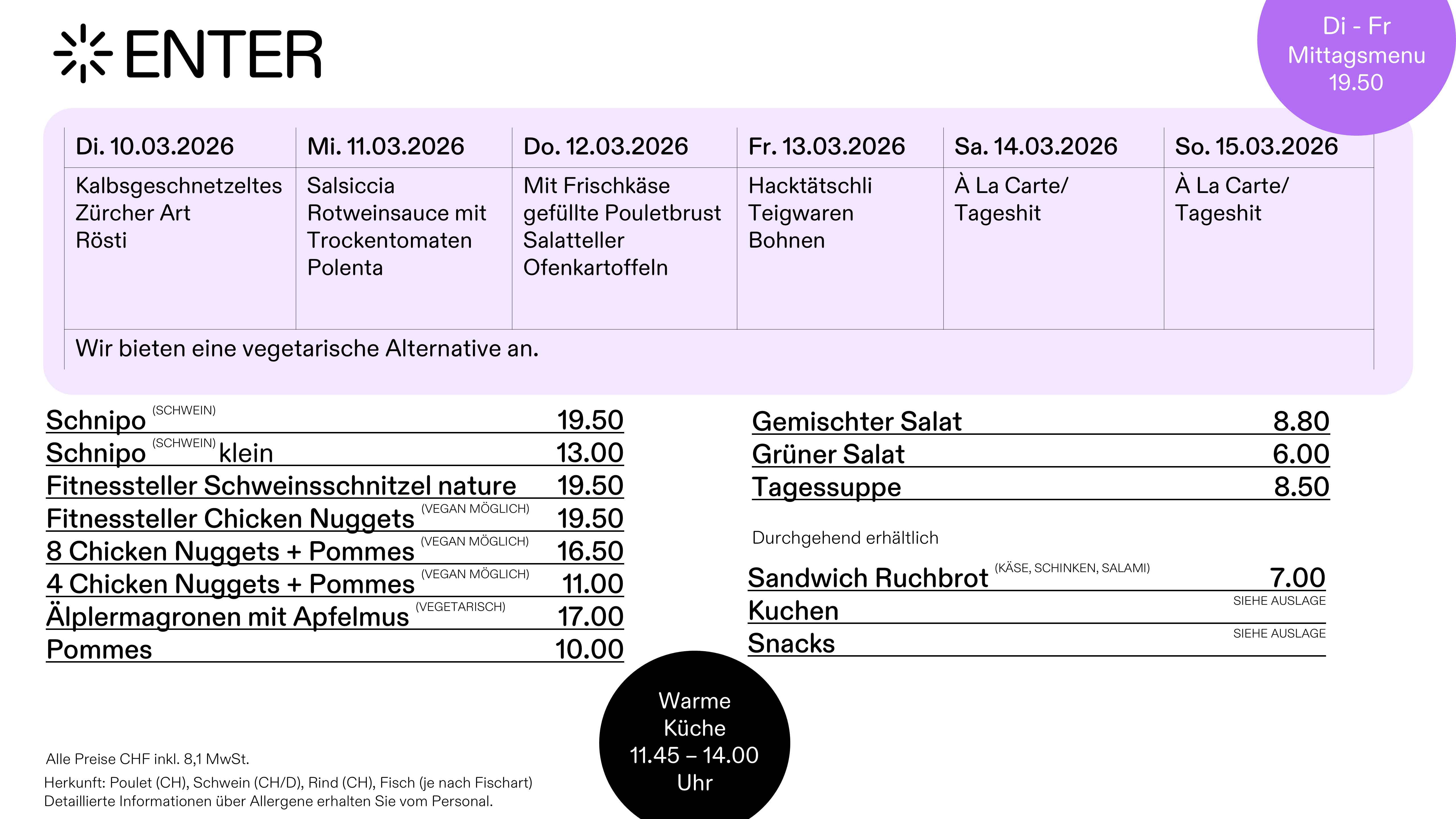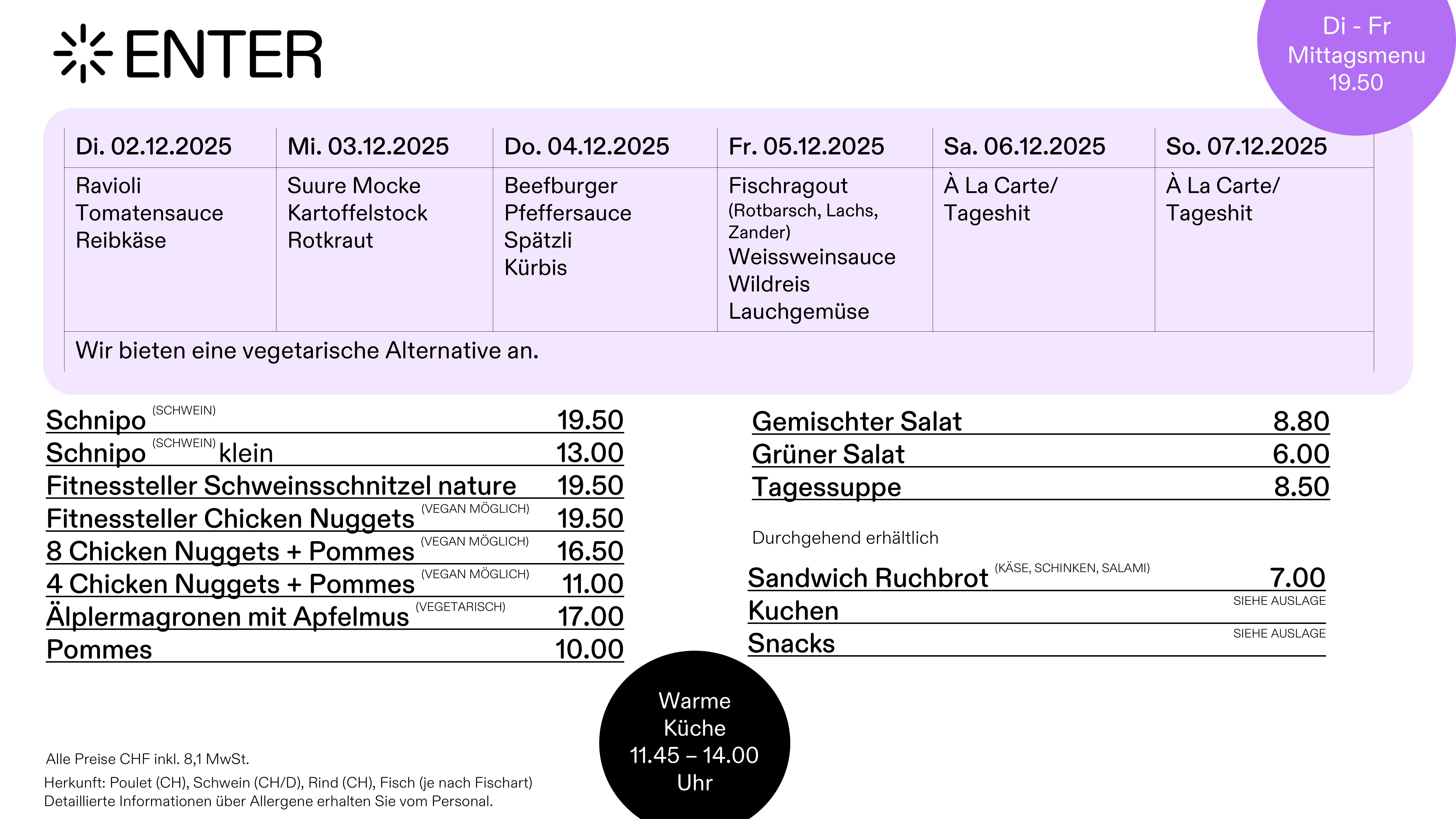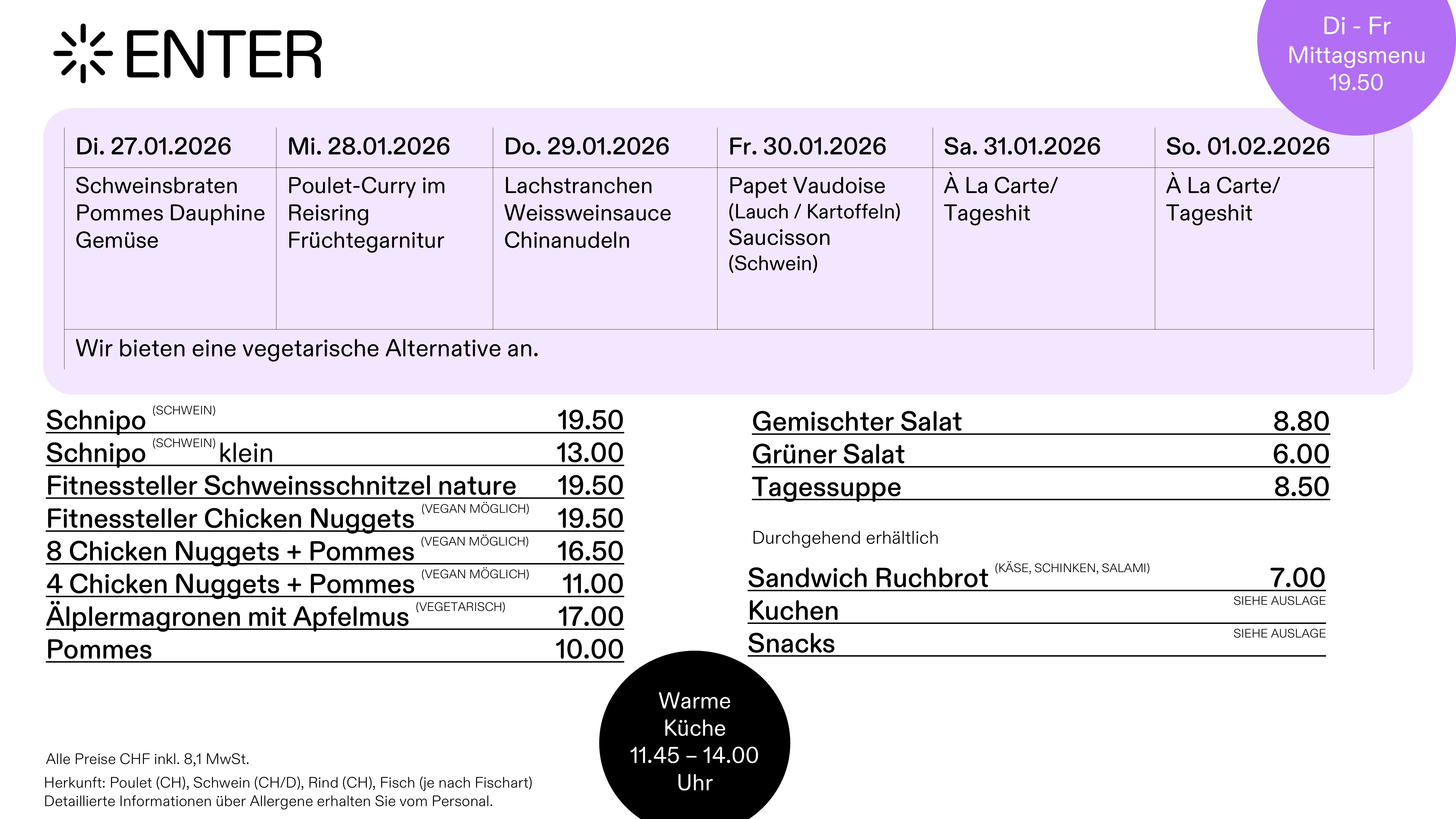 Warme Küche von 11.45 - 14.00